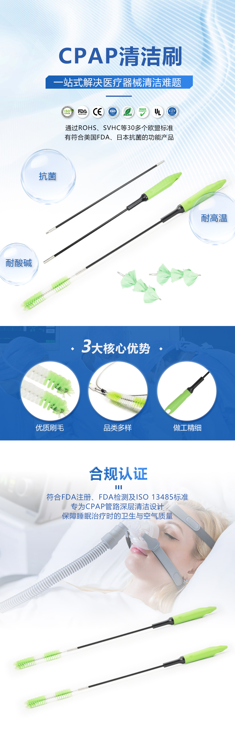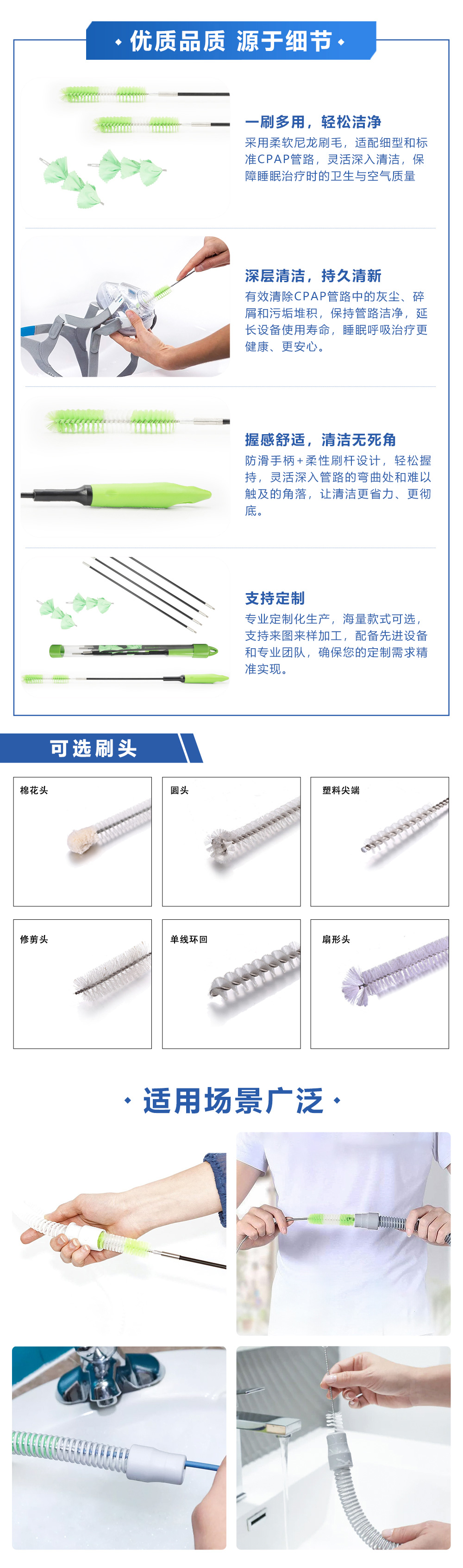 - 功能/用途:專為CPAP管路深層清潔設計,適配標準及細型CPAP管路