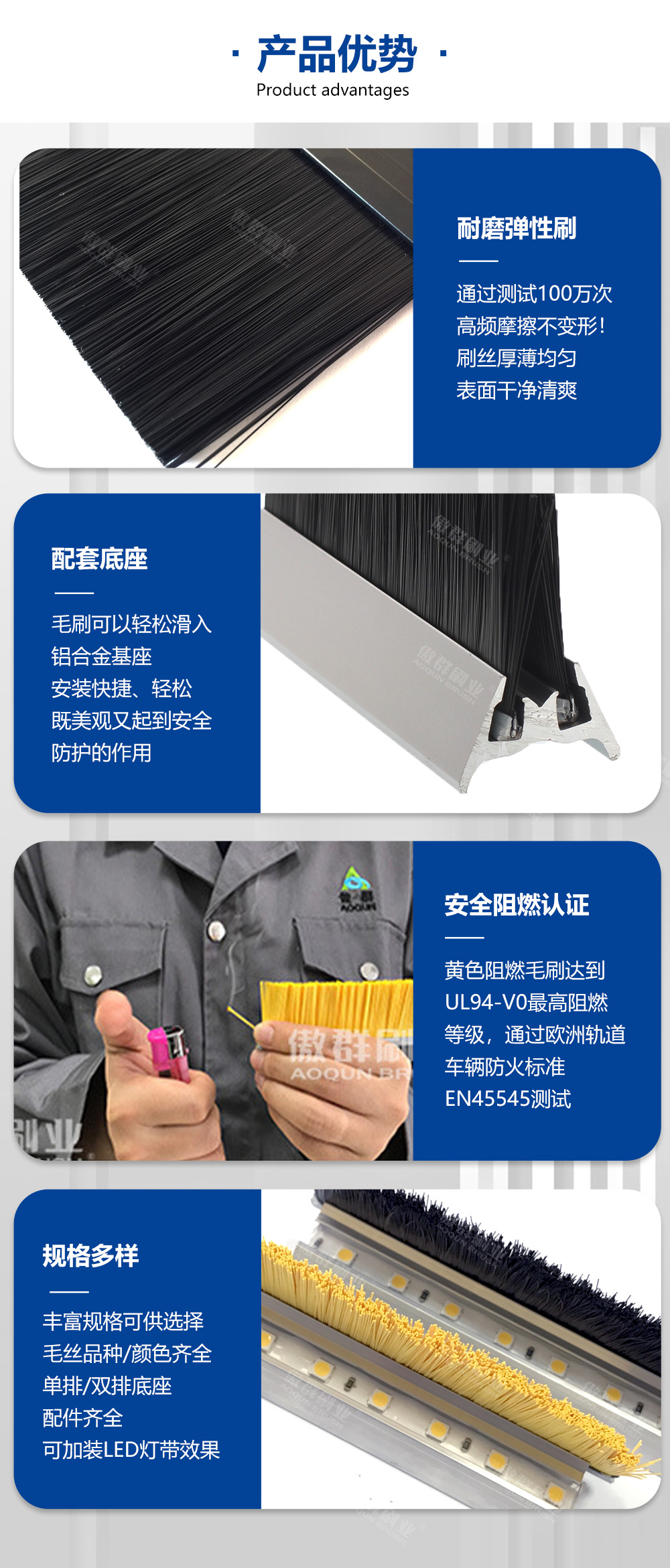 • 產品特點:刷絲牢固,不易脫落,安裝方便,支持非標定制